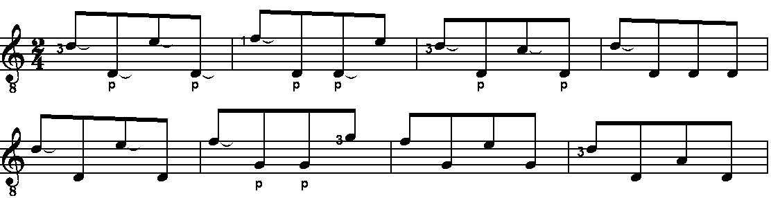 Übrigens ist beim Komponieren für Gitarre die Hauptarbeit tatsächlich nicht unbedingt das Finden von Ideen, sondern das instrumentgerechte Umsetzen einer Idee. Daraus folgt, dass du als Komponist von Unterrichtsliteratur leider manchen guten Einfall in den Mülleimer werfen musst, da er sich eben gegen jede leicht spielbare Realisation sperrt. Aber zum Glück lässt sich manchmal eine aussichtlose Situation retten, indem gerade ein unwahrscheinliches Element, etwa ein Tritonusschritt im Bass, gut sitzt. Sehr gut für den Anfangsunterricht sind pseudo-zweistimmige Sachen, das heisst, es wird immer nur ein Ton aufs Mal gezupft, aber durch das Weiterklingen einzelner Töne (oft leere Bässe) entsteht ein zweistimmiger Eindruck. Voraussetzung ist natürlich, dass im Unterricht, was ich sehr empfehle, möglichst von Anfang das Tirando behandelt wird.